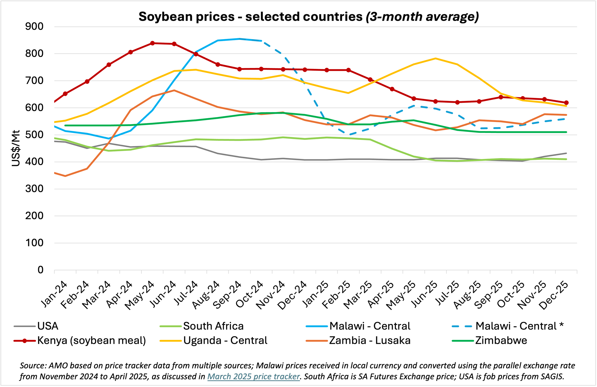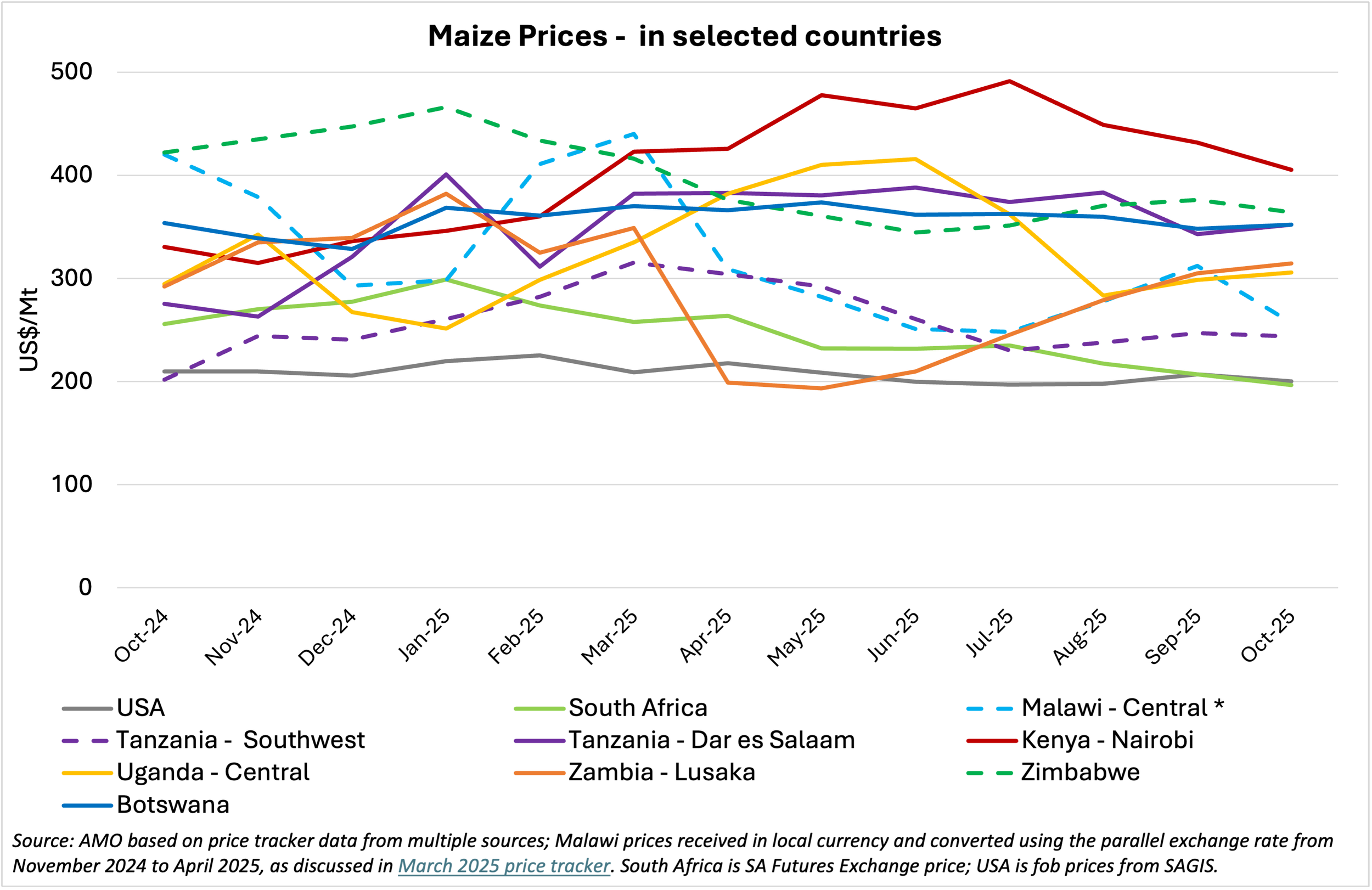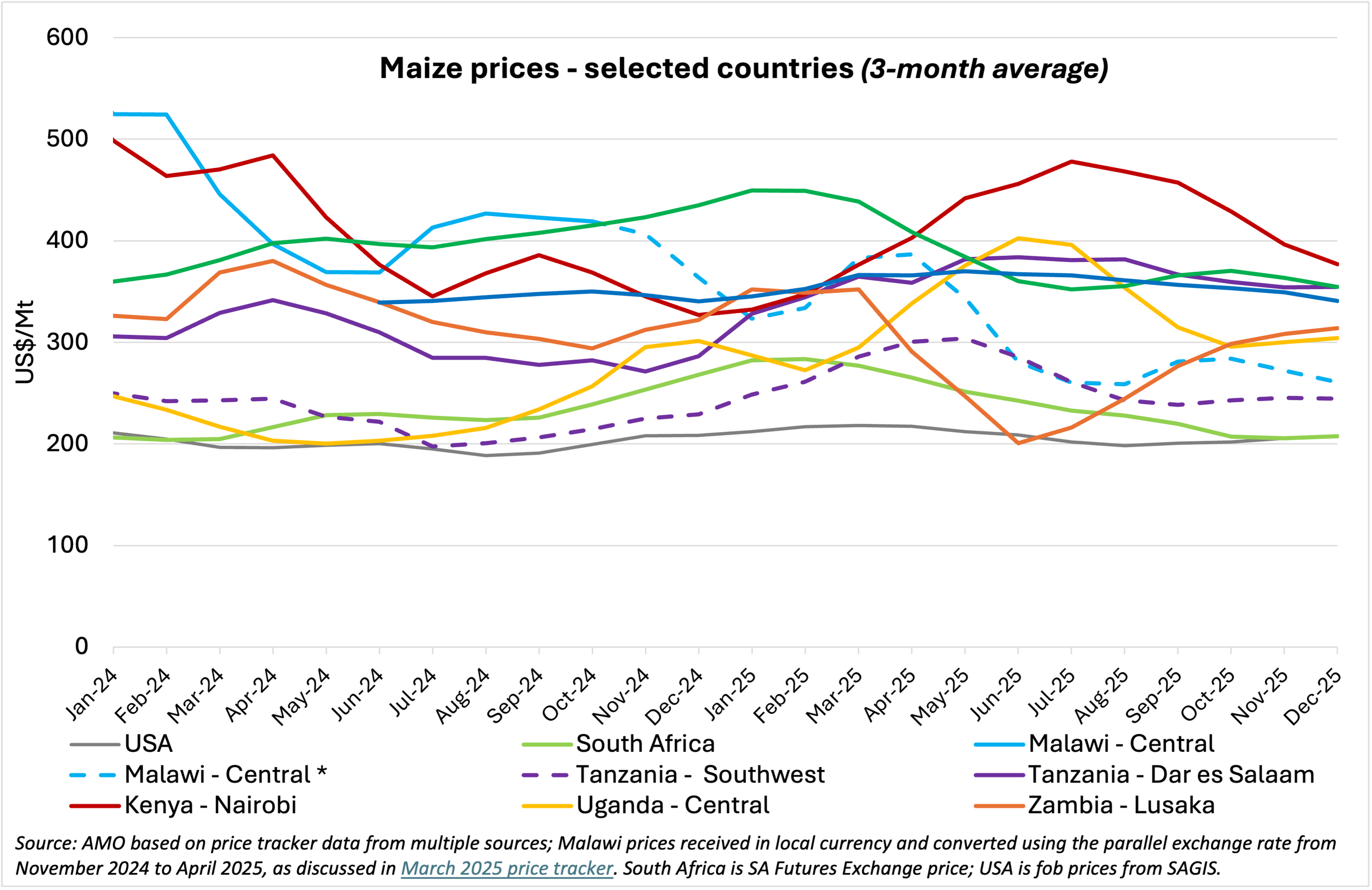 The data used by the African Market Observatory and reported in the price trackers is collated from various sources including directly from market participants and organisations in Kenya, Malawi, Rwanda, Tanzania, Uganda, Zambia and Zimbabwe.